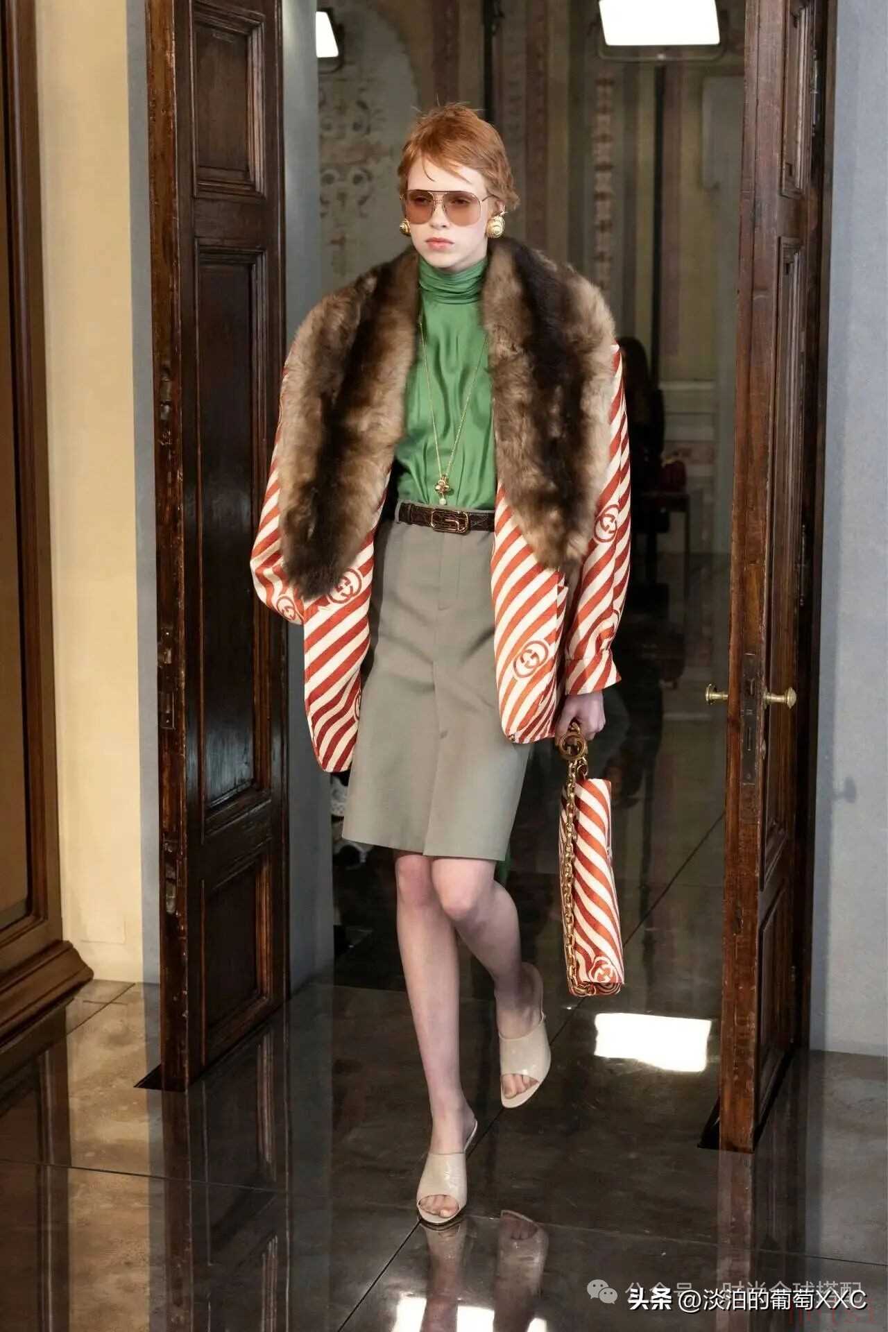 2. "材质创新与混搭":Gucci在材质运用上一直很大胆,可能会继续探索新的材质,或者将传统材质(如皮革)与创新的材料(如环保材料、特殊纹理面料)进行混搭。