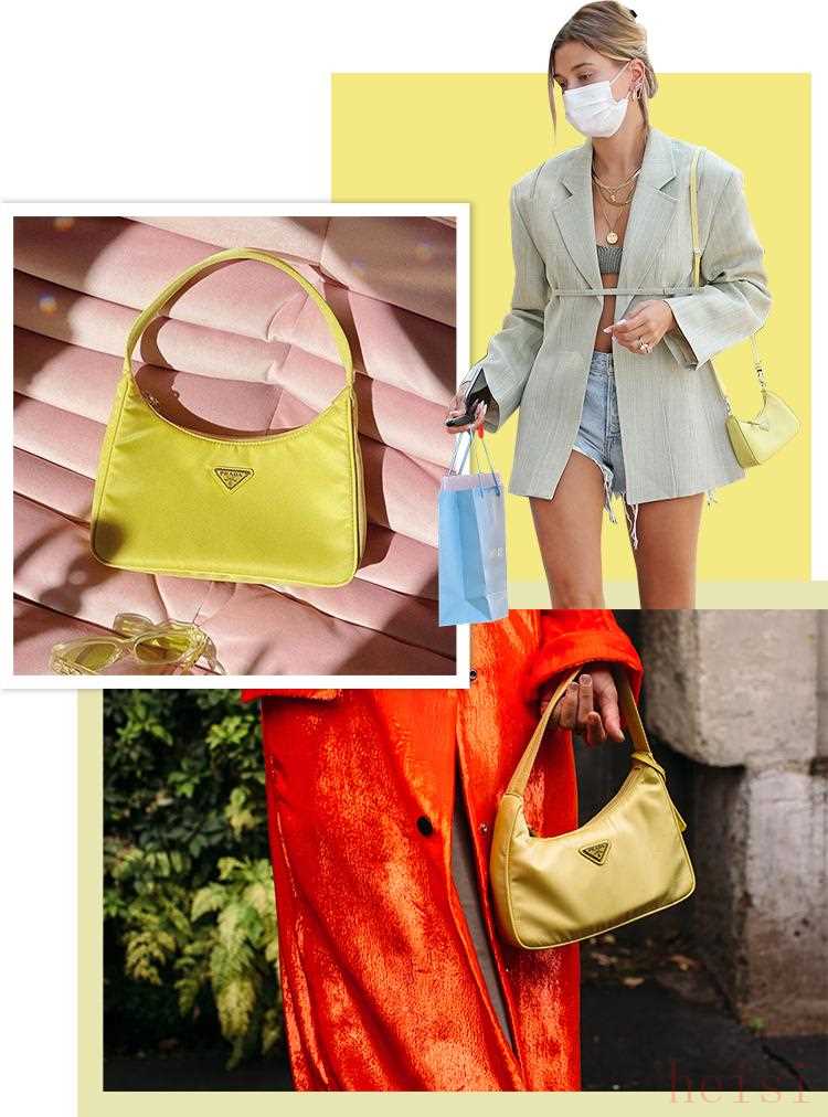 Hailey Bieber背了只柠檬黄,国外疫情期间这些色彩也正好能一扫阴霾,带来好心情呢。