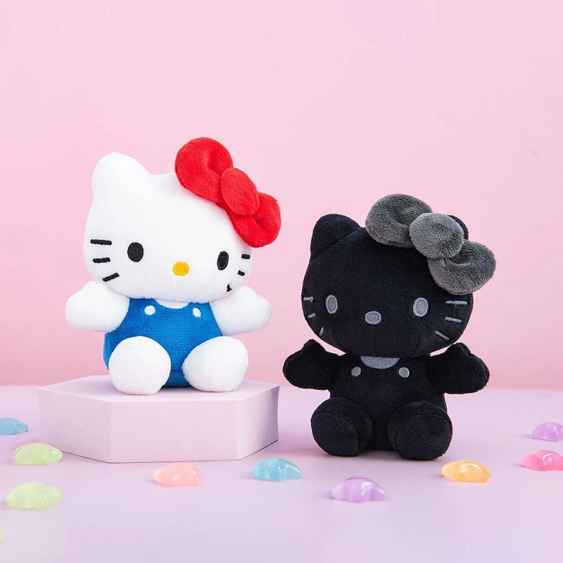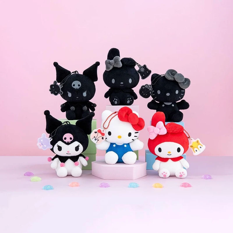 经典彩色版本:忠于角色原始、可爱迷人的经典配色,Hello Kitty经典的红蓝白配色、美乐蒂标誌性的红头巾和酷洛米俏皮的黑粉装束,以软萌的坐姿疗癒登场,是三丽鸥迷心中最熟悉的可爱面貌。