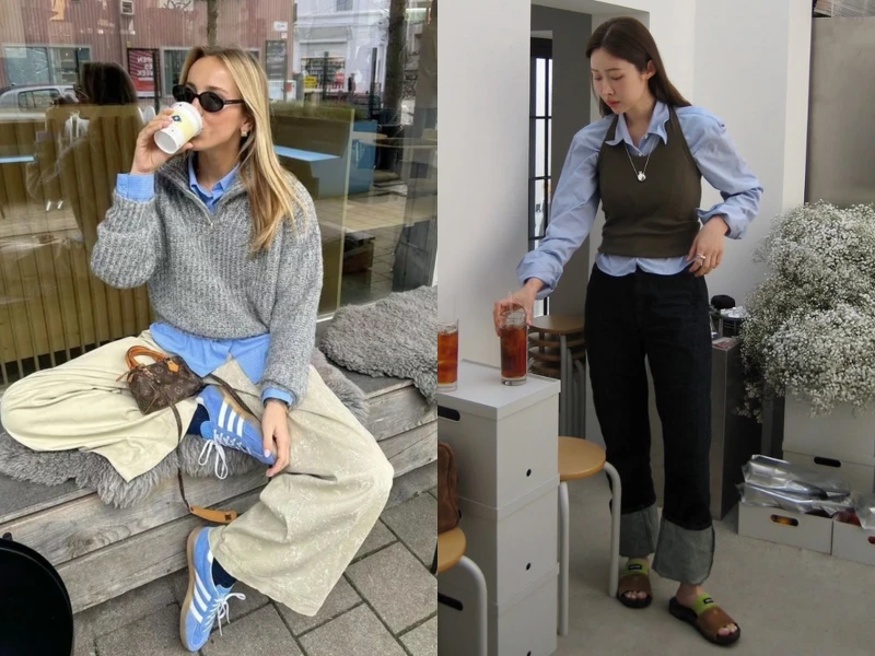 蓝色系衬衫和秋冬必备的灰色毛衣or背心,都是唾手可得的日常单品,将两者叠穿,便成了最简单的穿搭公式,在博主们之间也是非常热门的一款造型。外层选择宽鬆的毛衣,自带温暖休闲的冬季日常气息;若是用合身的灰色背心来搭配,则能一秒化身知性优雅的韩系小姊姊。