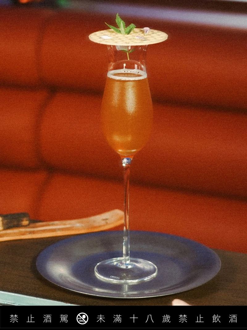 选用红韵红茶,搭配伏特加与椪柑,并加入香草与迷迭香,柑橘香气明亮。
