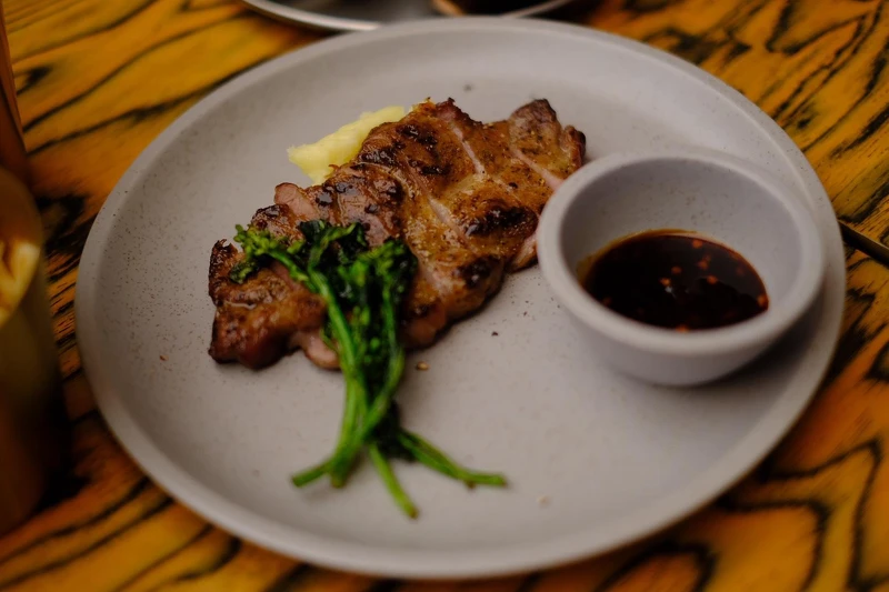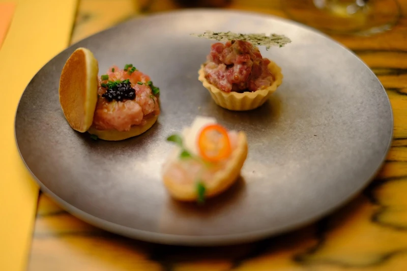 这里的菜单围绕的节奏设计,从开胃小点到主食与主菜,每一道都让小编吃得津津有味。WLS Finger Food以细腻的节奏开场,生牛肉鞑靼、酸辣生腌虾、鲔鱼铜锣烧等小点结合奢华食材与近似fine dining的摆盘,为整场用餐定下质感基调。Signature主食里,最具代表性的WLS牛肉麵来自Alicia旅居海外时对家乡的想念,台式汤底、美式风味层次与微带川香的辣度彼此呼应,更是他们家的私房配方。经典牛肉BLT堡则以美式形式为骨架,透过自家酱料与细节调整展现对熟悉料理的重新诠释。炸物与主菜在美式豪迈与台式直爽之间取得平衡,招牌细薯(小编也超爱)、炸鱼薯条、炸鸡腿排、碳烤美国牛菲力都能搭配多款酱料自由组合,成为聊天时最不知不觉被清空的餐桌主角。