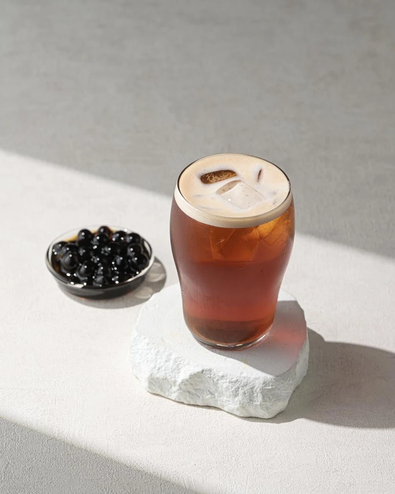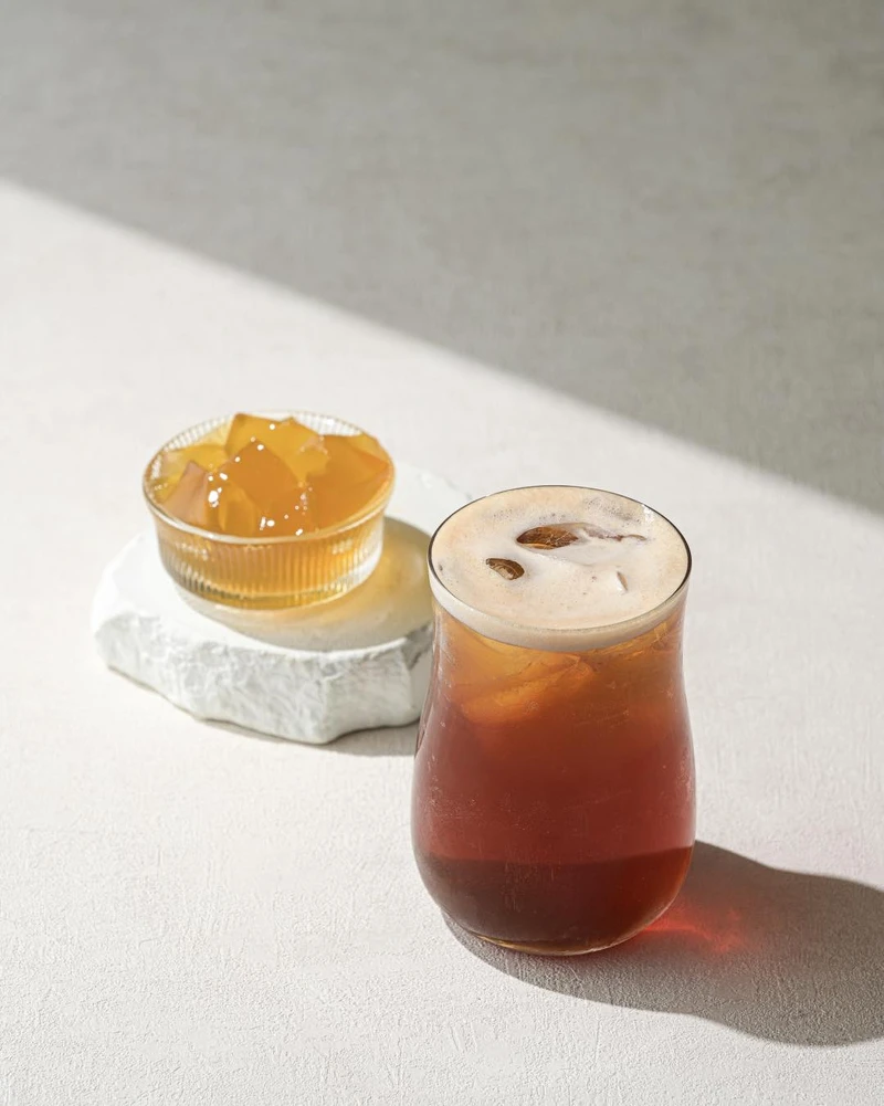 锡兰红茶带有焦糖香气,搭配荞麦冻的穀物香与Q弹口感,每一口都有茶香与咀嚼感的双重享受,层次感十足。