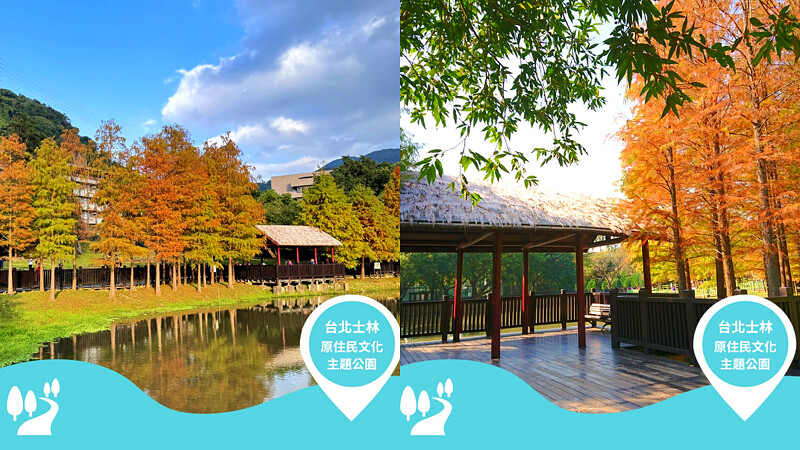 邻近故宫博物院的原住民文化主题公园,拥有大片开放式绿地,平时是周遭居民散步放鬆的好去处,在冬季便化身期间限定的!自翠绿转为金黄或橘红的落羽松,为公园增添柔和且具层次的季节色彩,更能欣赏水面倒映的宁静美好。最近週末都挤满人潮,搭乘捷运公车就能抵达,轻鬆就能拍出惬意美照。