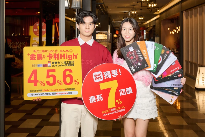 2026一开始就帮各位购物控暖身,新光三越于1/22-2/25期间强推年度首波购物节《金马卡利HIGH》,再祭出重磅skm points点数回馈,长达35天的购物节,不限日、不限店、线上线下只要同卡累计,就可把最高7%回馈轻鬆抱回家!不仅超值回馈边刷边有感,春节时刻就是要约姊妹们一起热闹购物,趋势夯品与必买好物种类更是澎湃到不行,划算入手超有成就感、还能买到心满意足,2026就用全新的美妆与时尚单品开启美好的一年,帮自己注入更多幸运与活力,预约幸福的一整年!