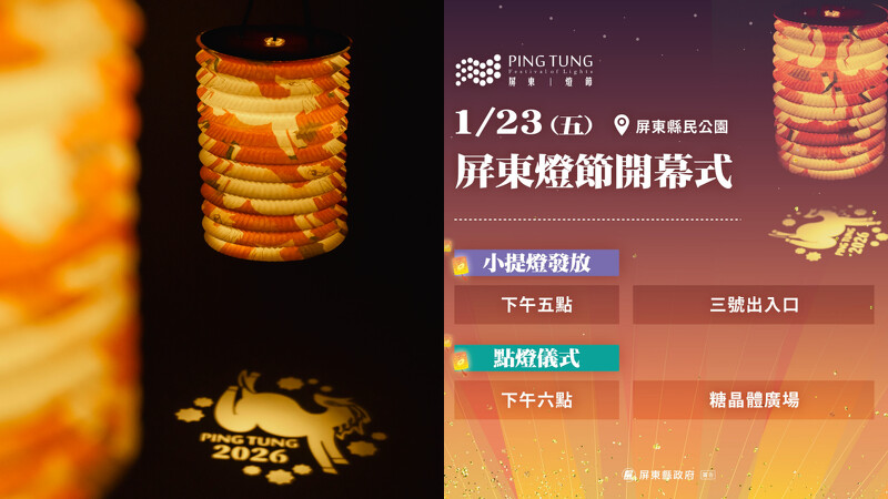2026屏东灯节将于1/23–3/8盛大登场,迈入第5年的屏东灯节规模再升级!串联县民公园、万年溪、胜利星村、内埔客家灯区4大场域,集结超过40组艺术灯饰,1/24开幕大戏更请来本土天团等超强卡司,搭配180秒烟火秀,为南台湾的新春假期拉开华丽序幕。此次灯区亮点、马年小提灯发放资讯,都一次整理给你。