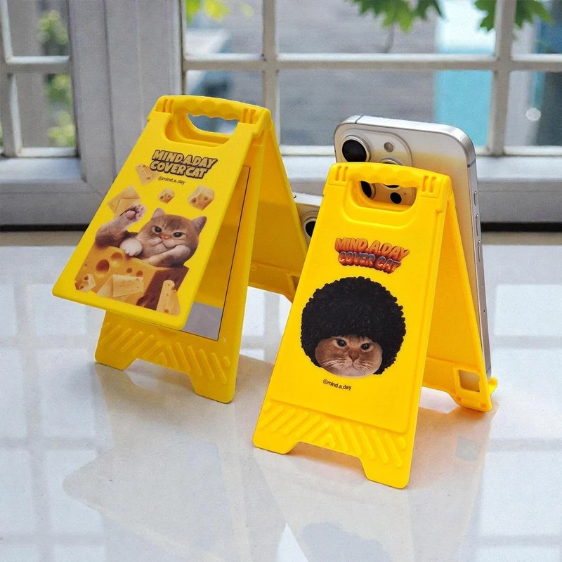 使用警示立牌造型为灵感打造的手机支架,巧妙结合掀盖镜面与支架功能,在实用性之余增添幽默趣味,让日常使用也充满风格感。