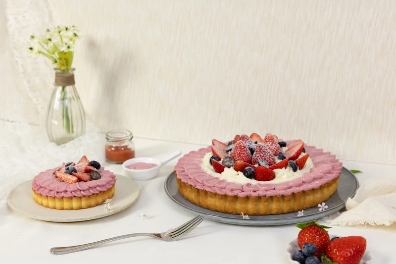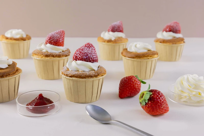 同步开跑的草莓季甜点同样展现依思尼乳品的高度存在感,今年推出的迷你草莓塔与花园草莓塔,将过往适合分享的大尺寸调整为一人份,入口节奏更轻盈。香脆塔皮以AOP发酵奶油製作,搭配大湖丰香草莓,甜度与酸度拿捏得宜。草莓舒芙乳酪杯与乳酪三重奏草莓可丽塔,则在蛋糕体与夹层乳酪酱中加入依思尼白乳酪,乳香清爽、不抢草莓风味,质地细緻让整体口感更显从容。