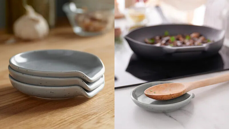 从此汤汁不再乱滴!适合放在炉边使用的,可随手放置汤匙或锅铲、避免酱汁滴落,使煮饭过程更顺心。贴心的凹槽设计让厨具自然定位、保持料理区整洁,也可直接放入洗碗机清洗。外型以柔和蓝灰色搭配细緻圆点的半瓷材质,为厨房增添温和的视觉层次。(NT$79)